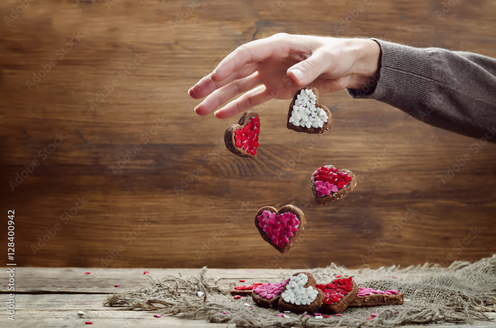 Male Hand With Flying Cookies In The Forms Wallpaper Mural - Decorly Solutions | Decorly Solutions