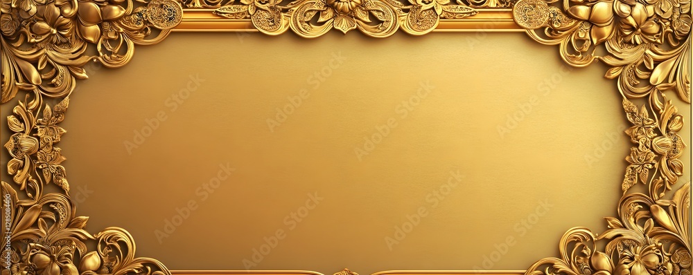 Elaborate golden floral frame borders a solid gold backgroun Wallpaper