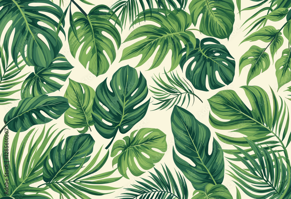 Various Tropical Leaves Including Palm Leaves And Ferns Wallpaper Mural - Decorly Solutions | Decorly Solutions