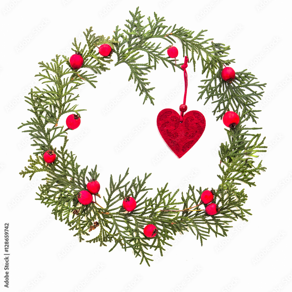 Christmas Frame Made Of Green Thuja Twigs Red Wallpaper Mural - Decorly Solutions | Decorly Solutions