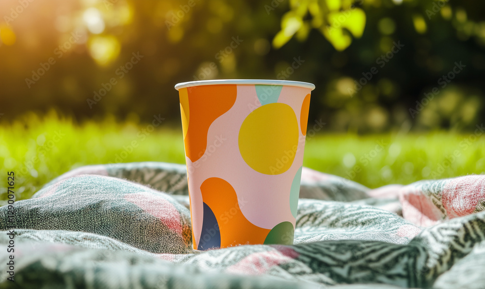 Paper Cup Adorned With Colorful Abstract Design Capturing Wallpaper Mural - Decorly Solutions | Decorly Solutions