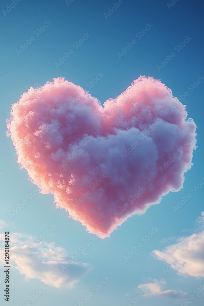 Dreamy Pink Cloud Heart Floating in a Serene Blue Sky