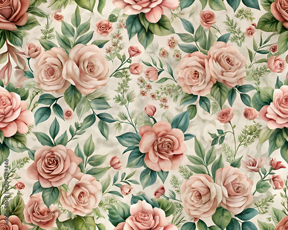 Delicate Watercolor Roses In A Repeating Pattern , Wallpaper, Wedding