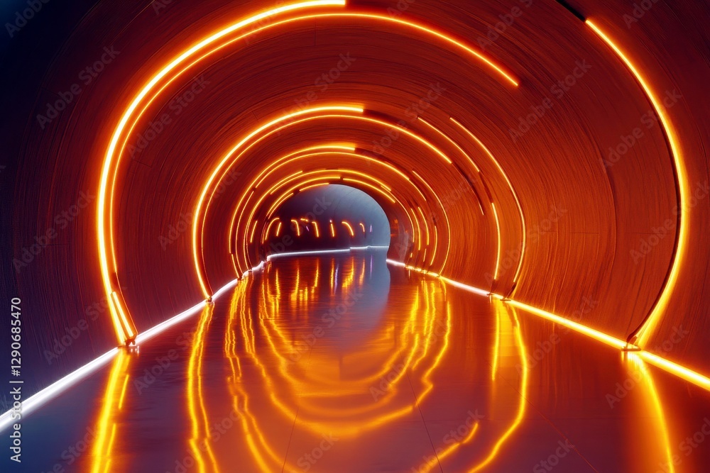 Vibrant And Futuristic Tunnel With Neon Orange Lights Wallpaper Mural - Decorly Solutions | Decorly Solutions