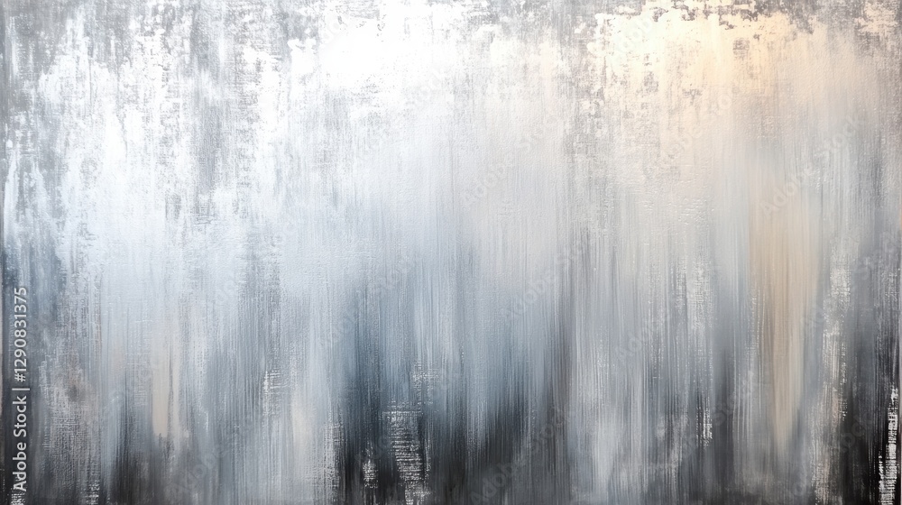Soft abstract painting with gray and white tones creates calming atmosphere. layered graphite textures blend seamlessly, evoking sense of tranquility and depth