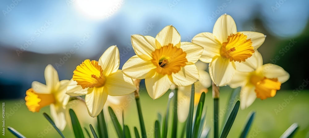 Vibrant Yellow Daffodils Spring Flowers In Bloom Sunny Wallpaper Mural - Decorly Solutions | Decorly Solutions