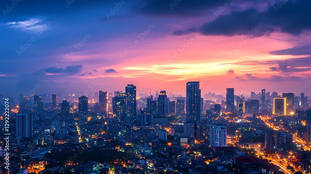 Stunning Cityscape Sunset Over Urban Downtown Modern Skyline Wallpaper Mural - Decorly Solutions | Decorly Solutions
