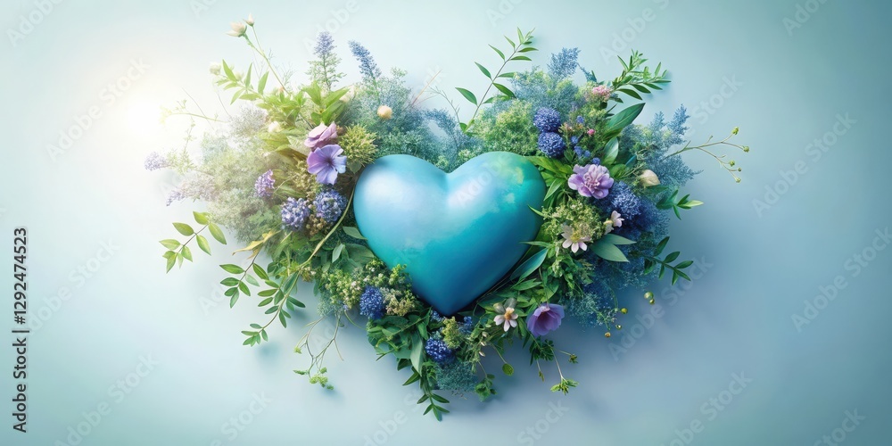 Serene Teal Heart Encircled by a Bountiful Array of Spring B Wallpaper