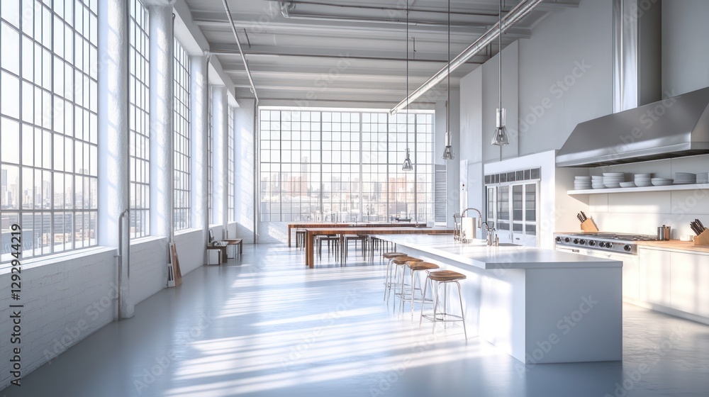 Sunlit Loft Kitchen City View Workspace Cooking Wallpaper Mural - Decorly Solutions | Decorly Solutions