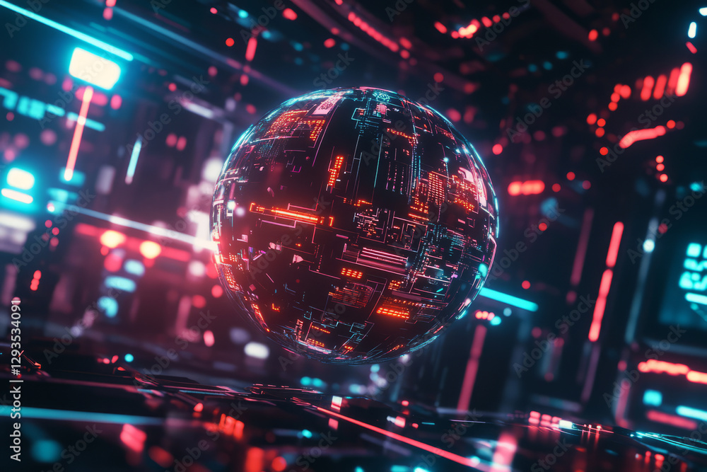A High-tech Futuristic Energy Sphere Floating In Deep Wallpaper Mural - Decorly Solutions | Decorly Solutions