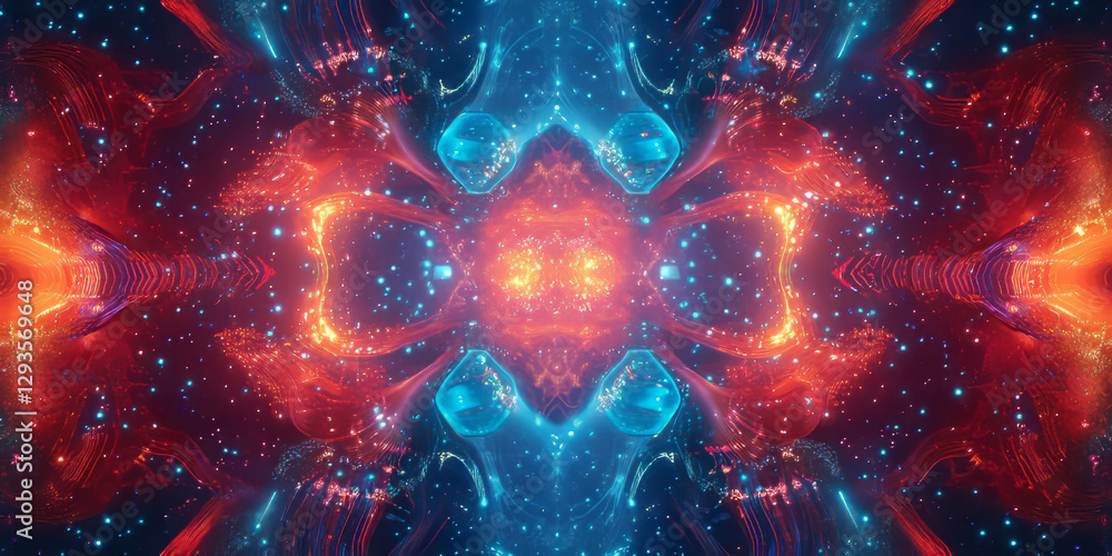 Fiery glowing star in cosmic nebula