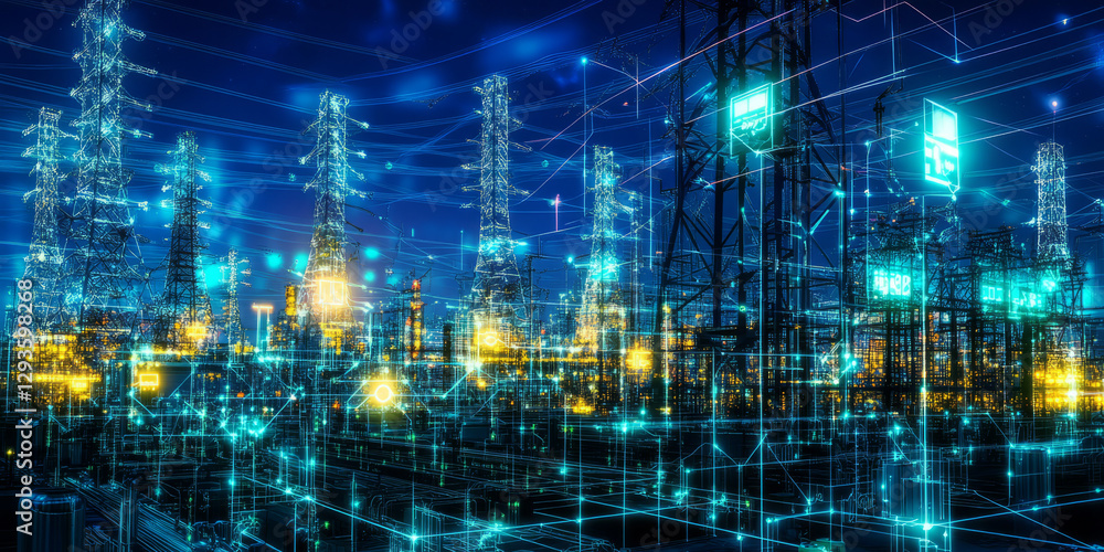 A glowing futuristic AI-powered smart grid featuring cyberne Wallpaper