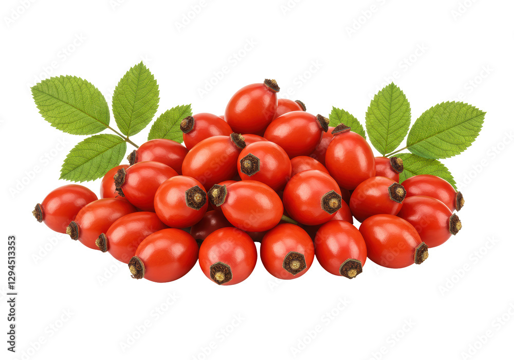 Isolated Pile Of Fresh Rose Hips With Leaves Wallpaper Mural - Decorly Solutions | Decorly Solutions