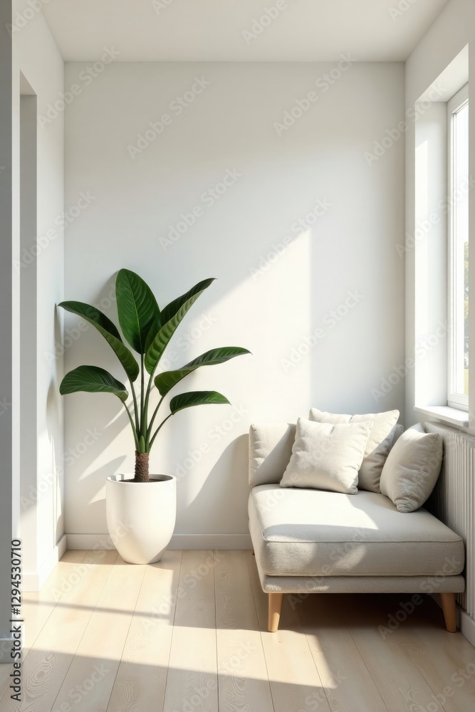 Serene Minimalist Living Space Featuring A Chaise Lounge Wallpaper Mural - Decorly Solutions | Decorly Solutions