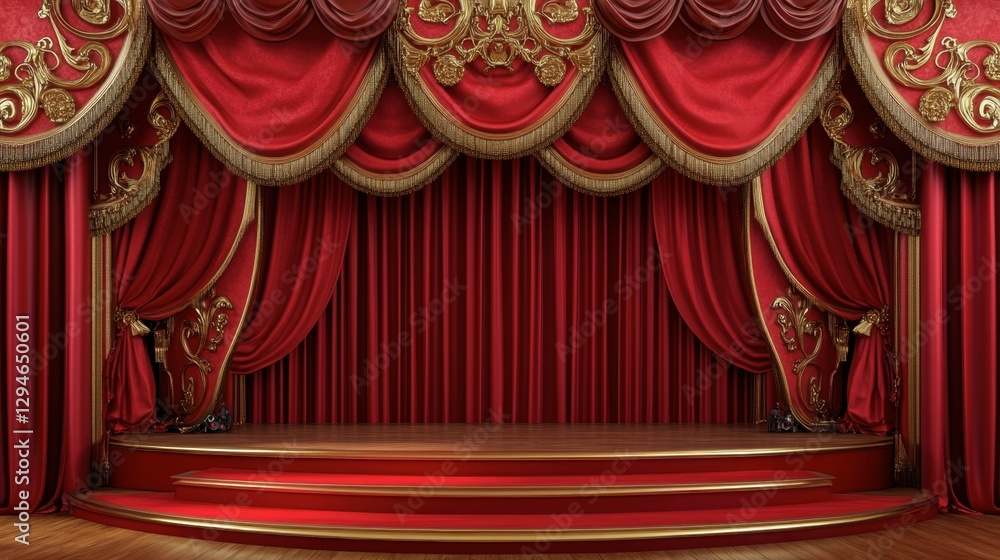 A Royal Red And Gold-themed Stage With Rich Wallpaper Mural - Decorly Solutions | Decorly Solutions