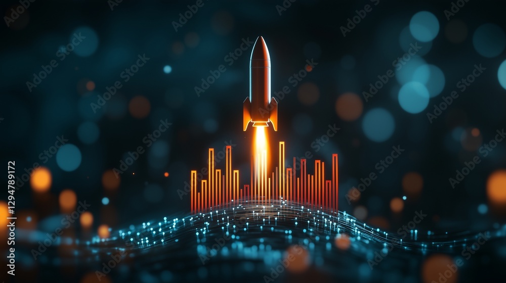 Rocket Is Flying Over A Chart Graph Of Wallpaper Mural - Decorly Solutions | Decorly Solutions