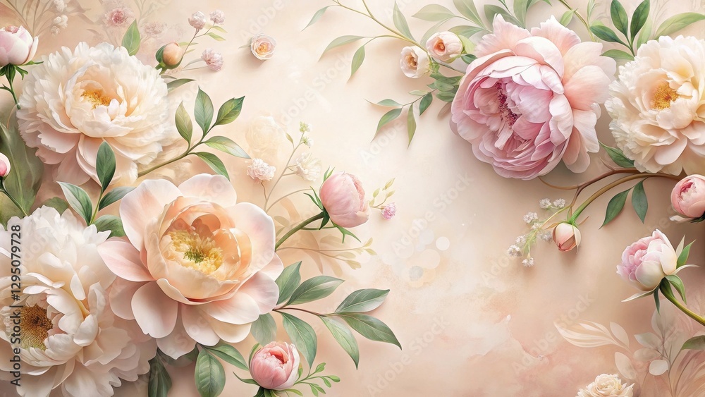 Elegant Pastel Floral Arrangement Featuring Blossoming Peonies And Wallpaper Mural - Decorly Solutions | Decorly Solutions