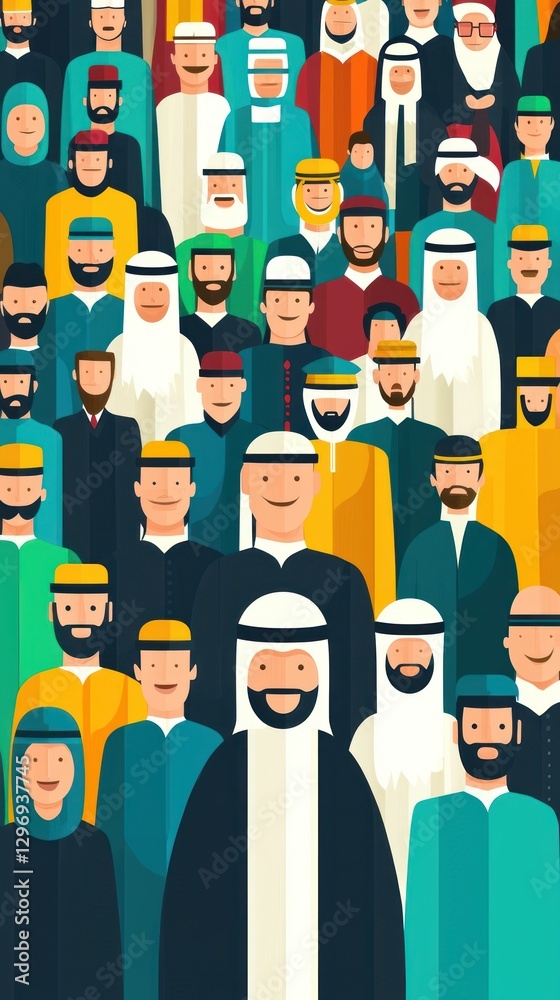 Diverse crowd in traditional Middle Eastern attire Wallpaper