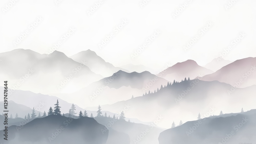 Misty Blue And Grey Mountain Range In Soft Wallpaper Mural - Decorly Solutions | Decorly Solutions