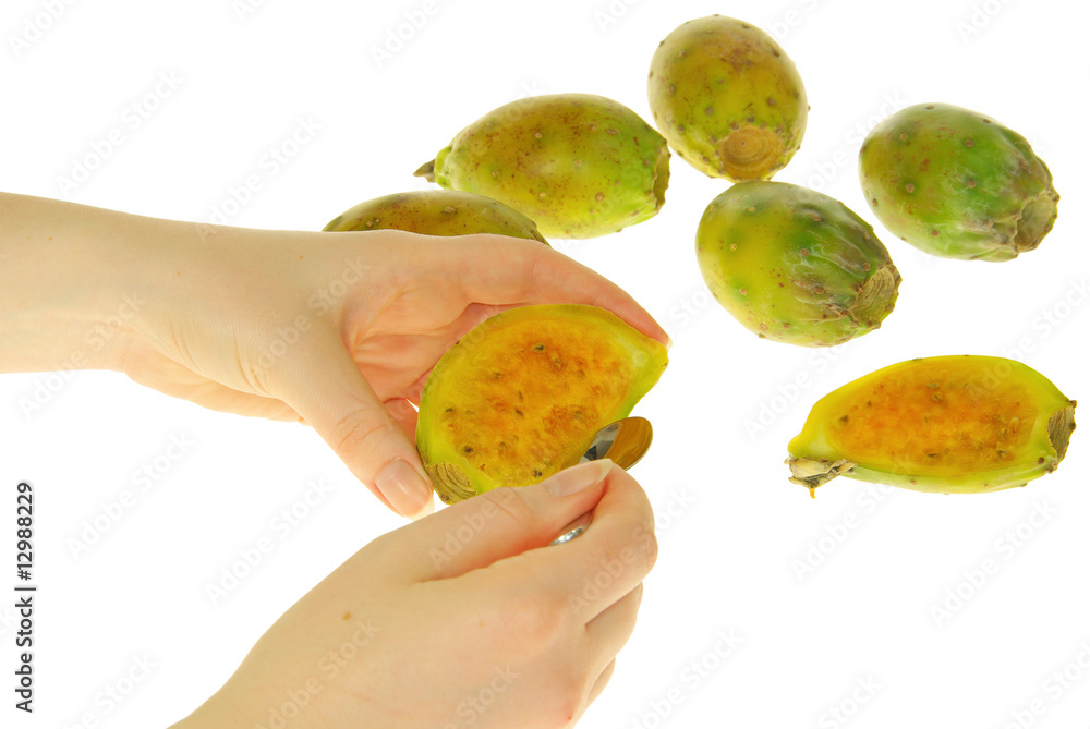 Opuntia cactus isolated on white background. Sabres, fruits of Opuntia ficus-indica. Barbary.