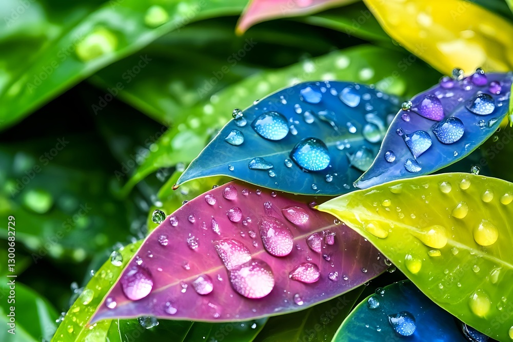 Colorful Dew Drops On Vibrant Leaves - Macro Wallpaper Mural - Decorly Solutions | Decorly Solutions