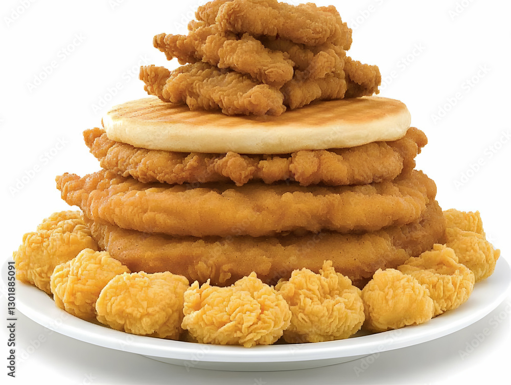 Stack of Crispy Fried Chicken Tenders, Cut Piece on Top