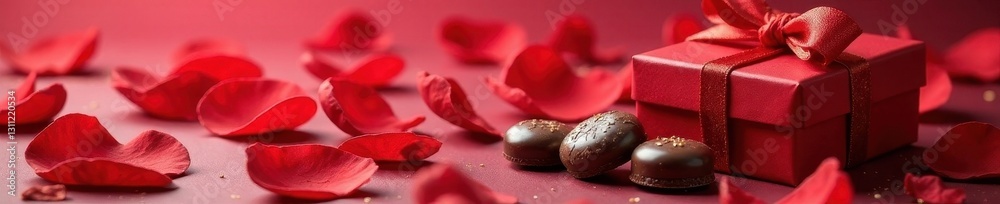 Delicate red rose petals scattered on silky fabric create a romantic and sensual atmosphere, perfect for Valentine's Day or expressing love and passion.