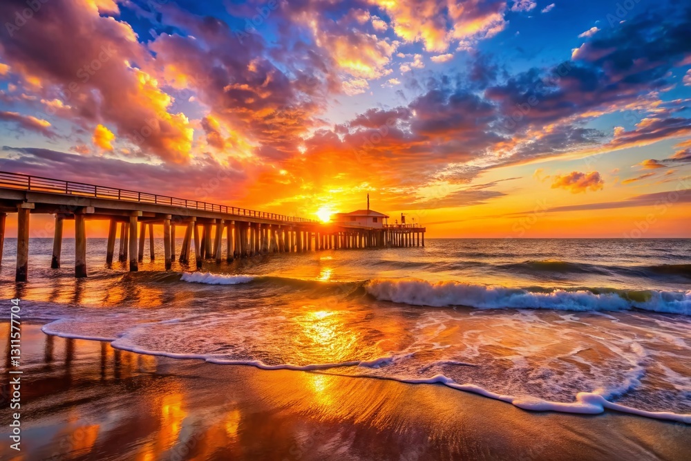 Stunning Sunrise Over Belmar Fishing Pier - New Wallpaper Mural - Decorly Solutions | Decorly Solutions