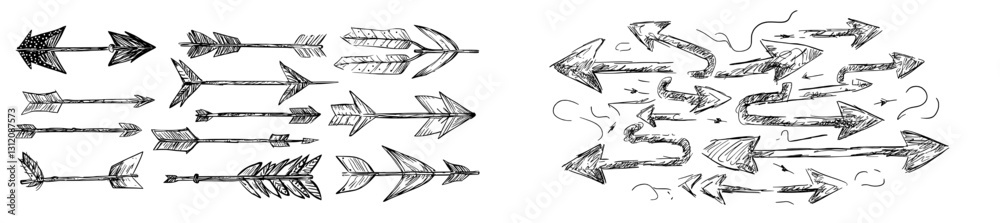 Flechas Aisladas. Dibujo Artístico Hecho A Mano. Vector.