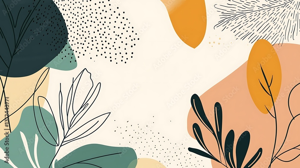 A Minimalist Design Featuring Soft, Abstract Shapes And Leaves In Earthy Tones. Ideal For Backgrounds Or Nature-themed Projects.