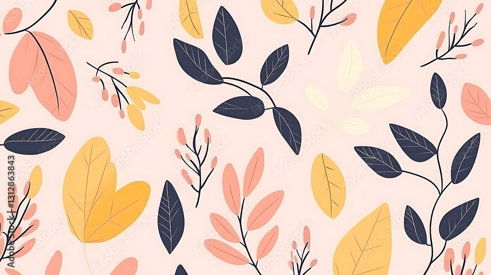 Pastel-colored leaves and branches pattern Perfect for autum Wallpaper