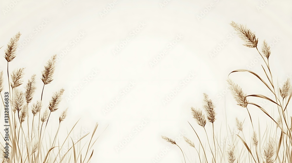Delicate Brown Grasses Frame A Soft White Background Wallpaper Mural - Decorly Solutions | Decorly Solutions