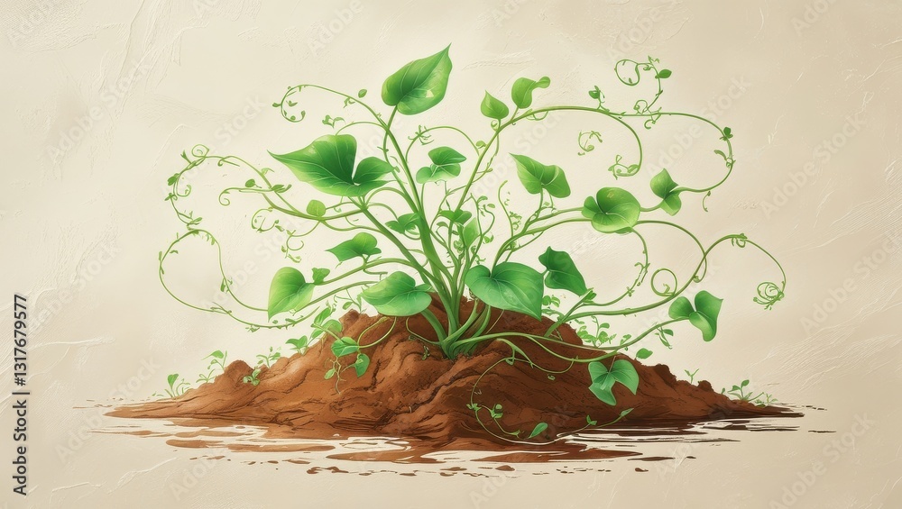 Artistic Representation Of A Plant Life Cycle From Seedling To Mature Plant