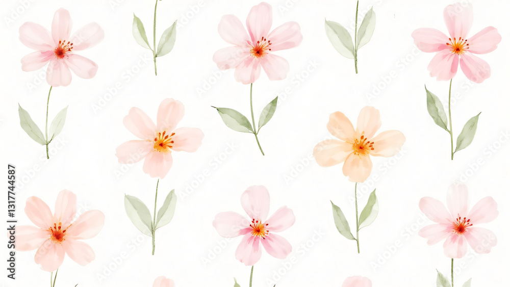 Flower Stye Water Color Clip Art Isolated On Wallpaper Mural - Decorly Solutions | Decorly Solutions