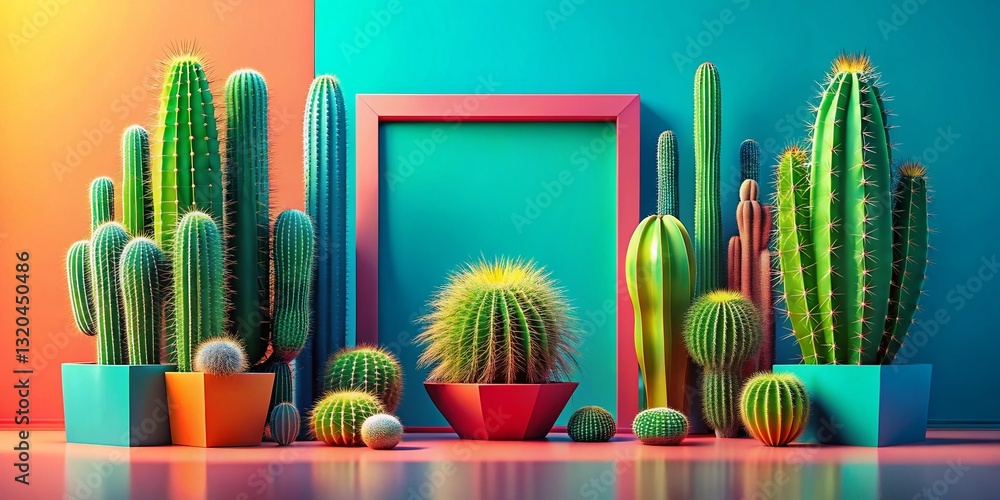 Abstract 3d Cactus Border Nature Botany Graphic Poster Wallpaper Mural - Decorly Solutions | Decorly Solutions