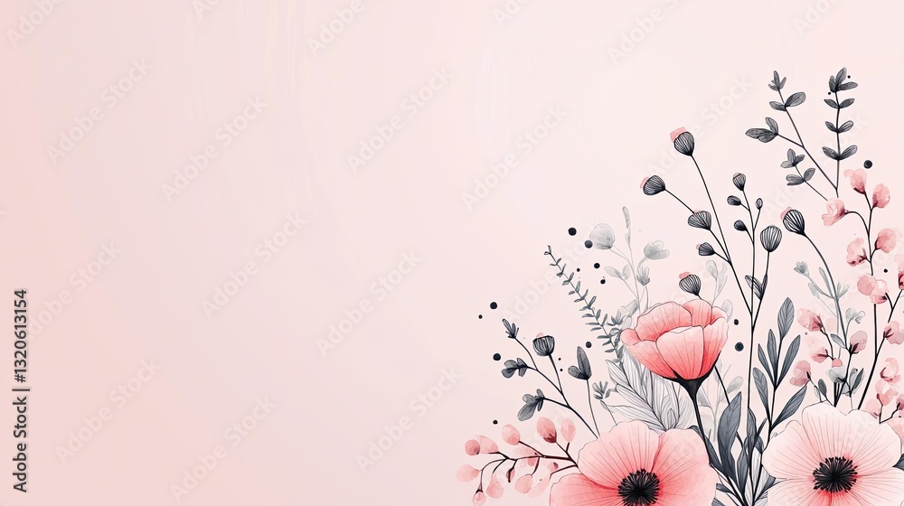 Delicate pink wildflowers on soft cream background with subtle botanical elegance