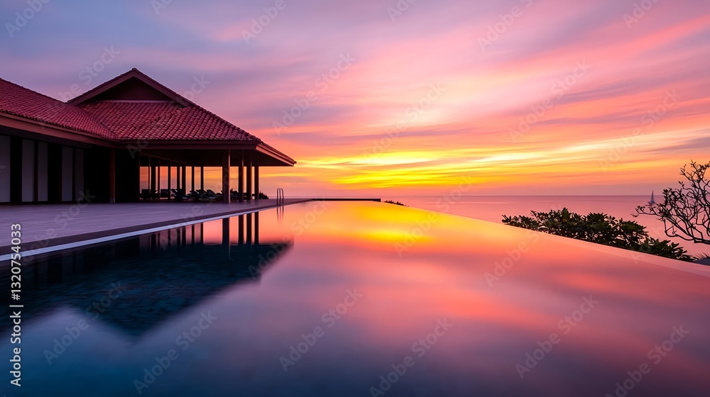 Sunset Luxury Villa Infinity Pool - Luxury Travel Wallpaper Mural - Decorly Solutions | Decorly Solutions
