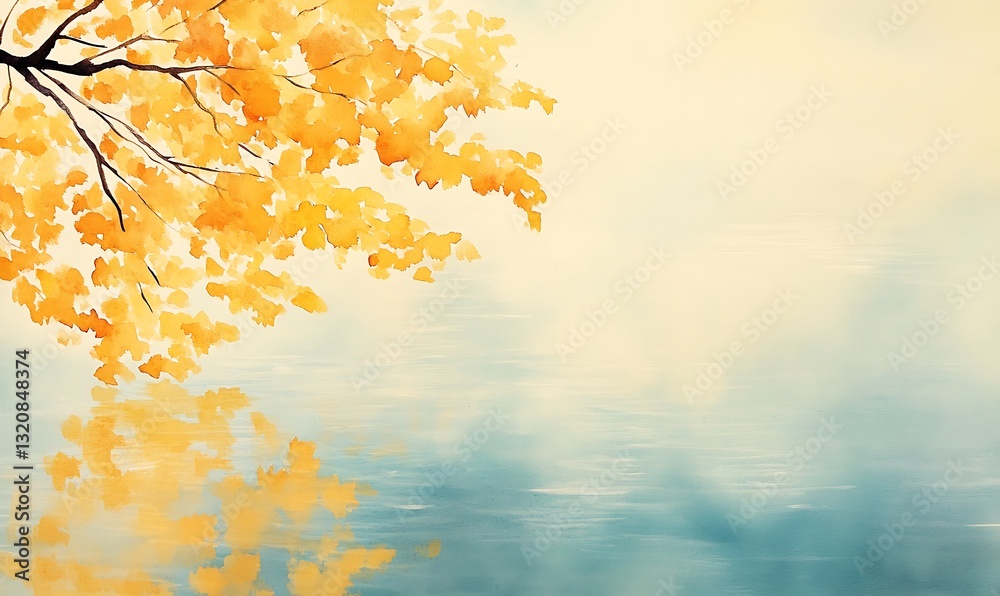 Autumn Leaves Reflect On Calm Water Creating A Wallpaper Mural - Decorly Solutions | Decorly Solutions