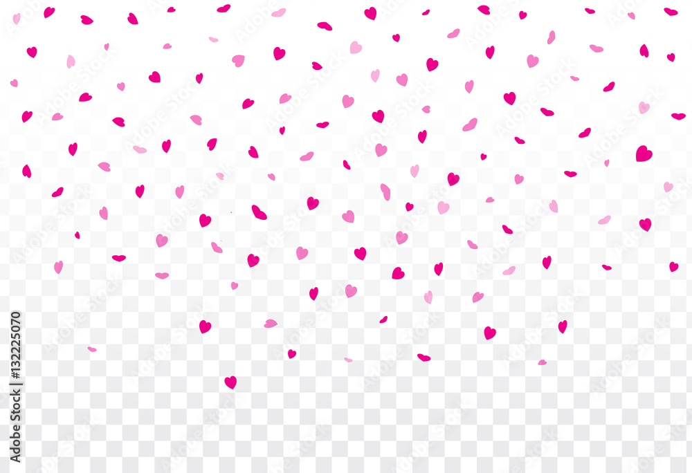 Red and pink paper confetti in shape of hearts on transparent background for St. Valentine's Day.