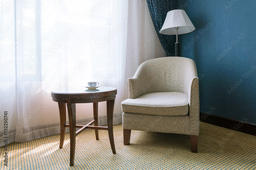 Relax Concept Vintage Chair Wooden Table With Lamp Wallpaper Mural - Decorly Solutions | Decorly Solutions