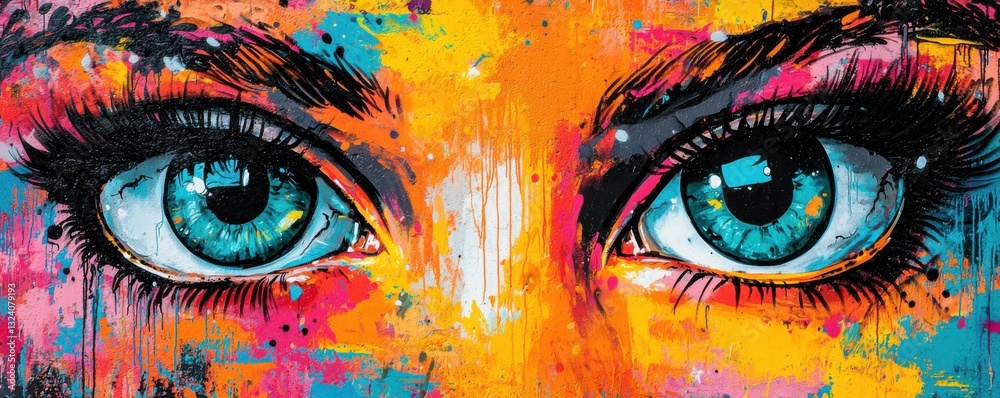 A Vibrant And Colorful Close-up Of Expressive Eyes Wallpaper Mural - Decorly Solutions | Decorly Solutions