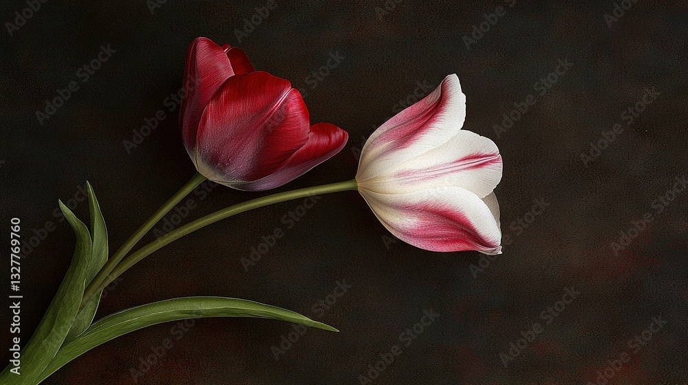 Black-brown Background With Two White-red Tulips And A Wallpaper Mural - Decorly Solutions | Decorly Solutions