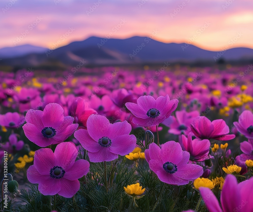 Vibrant Pink Flowers Bloom In A Breathtaking Sunset Wallpaper Mural - Decorly Solutions | Decorly Solutions