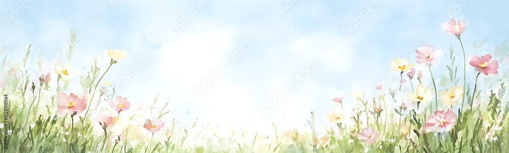 Bright Meadow Filled With Colorful Flowers Under A Wallpaper Mural - Decorly Solutions | Decorly Solutions
