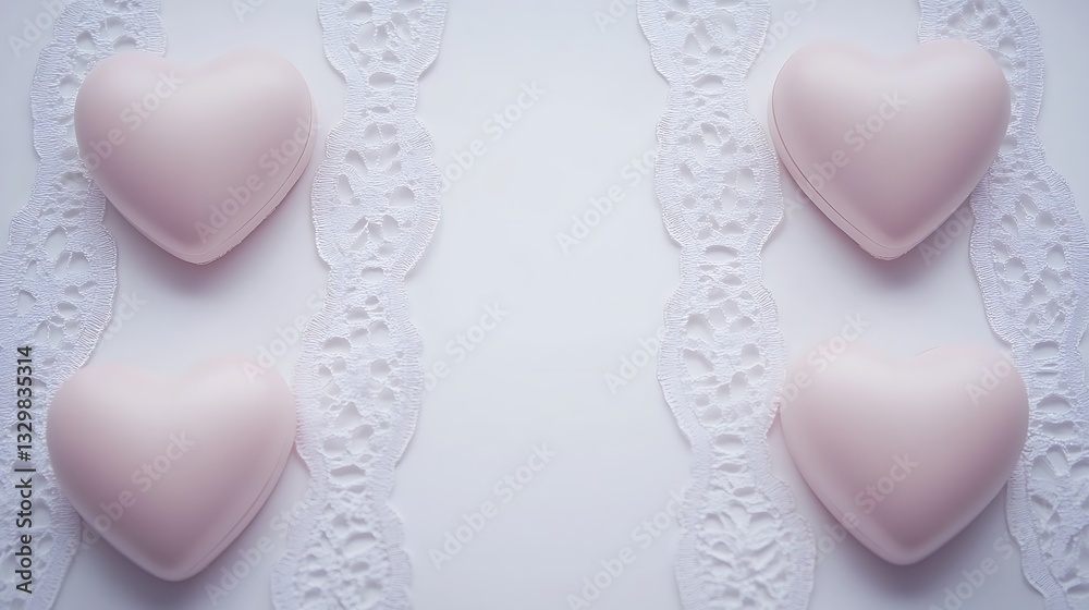 Pink Heart Shaped Objects And White Lace Placed Wallpaper Mural - Decorly Solutions | Decorly Solutions