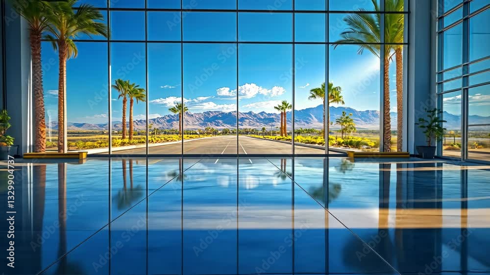 Desert Oasis: Stunning View from Modern Building Wallpaper