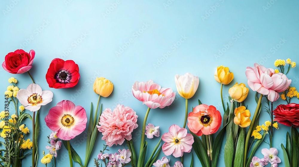 Colorful Vertical Banner Featuring Cute Flowers Against Blue Wallpaper Mural - Decorly Solutions | Decorly Solutions