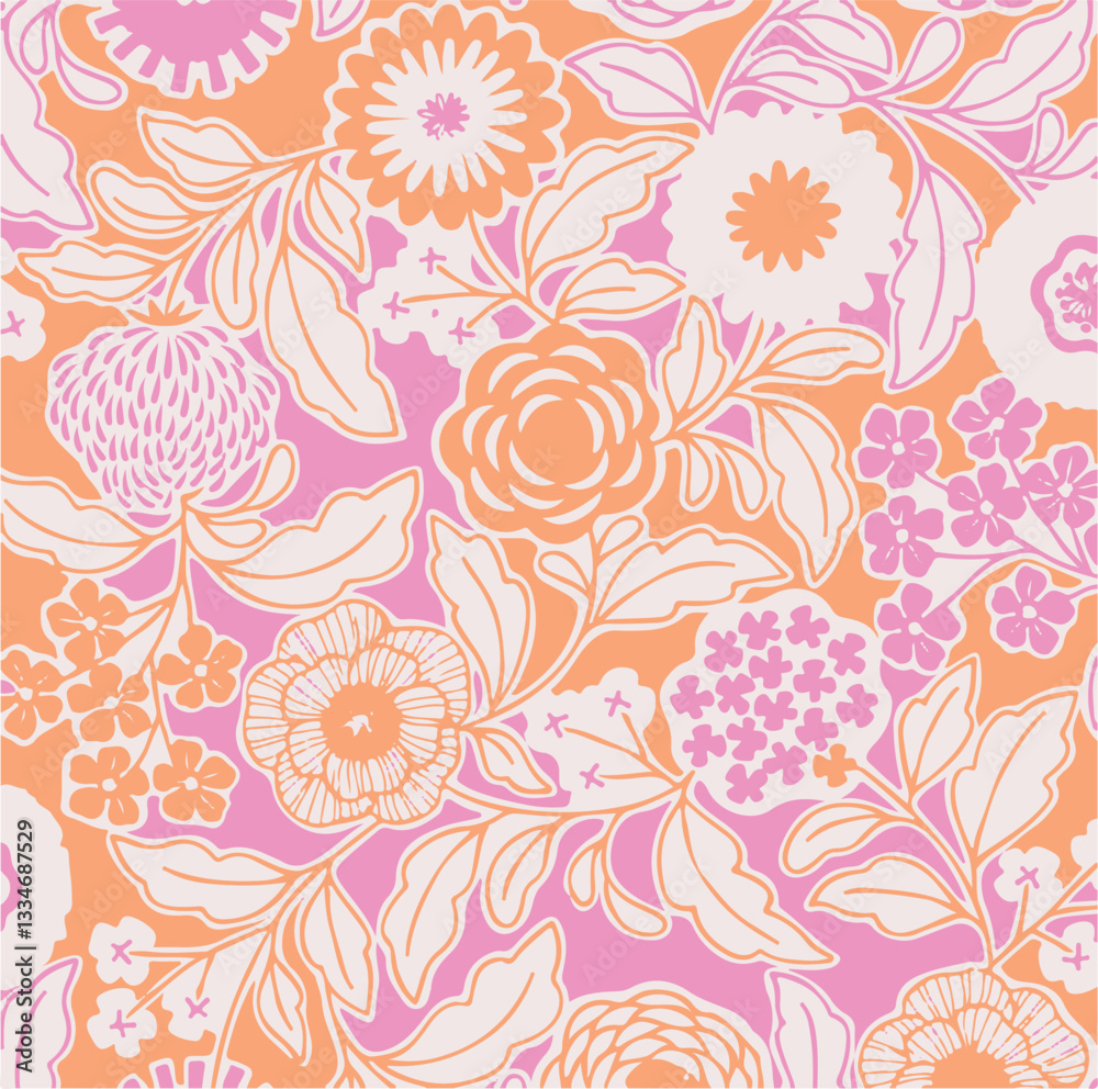 Abstract Vector Monochrome Big Flowers All Over Textiles Wallpaper Mural - Decorly Solutions | Decorly Solutions