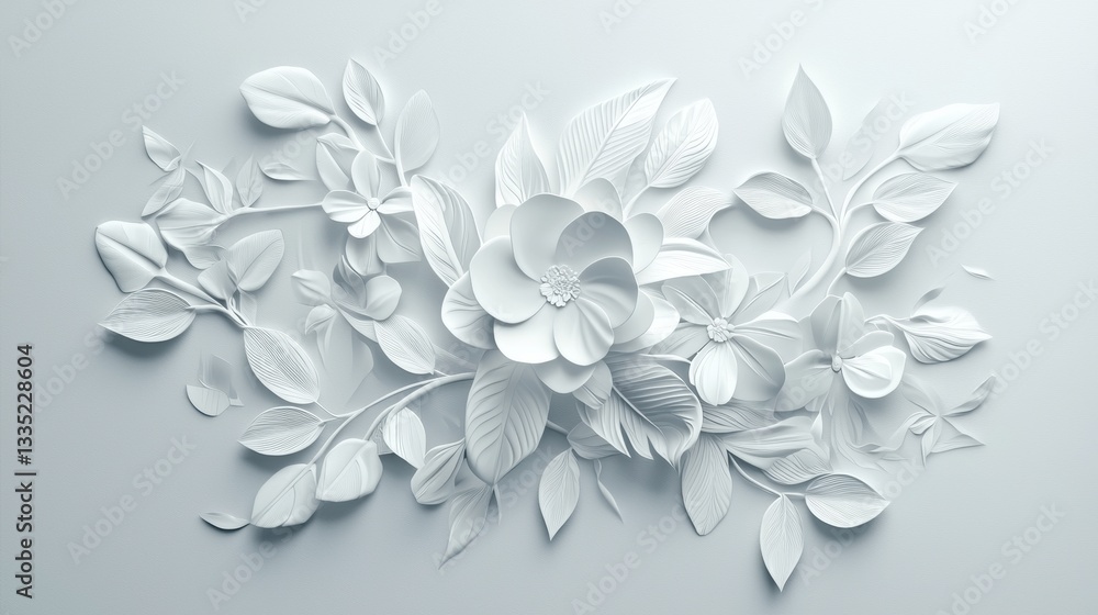 Elegant White Floral Design Background Artwork