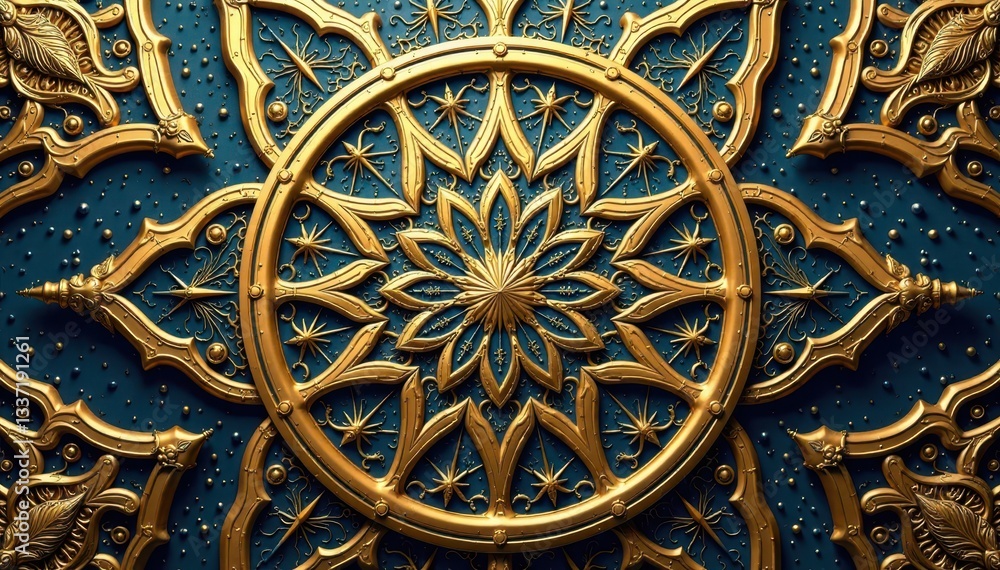 Intricate golden arabesque mandala on rich background, culture, islam